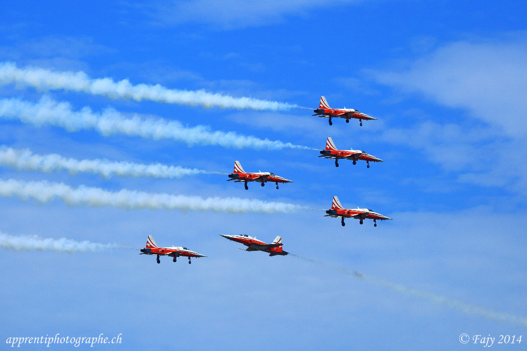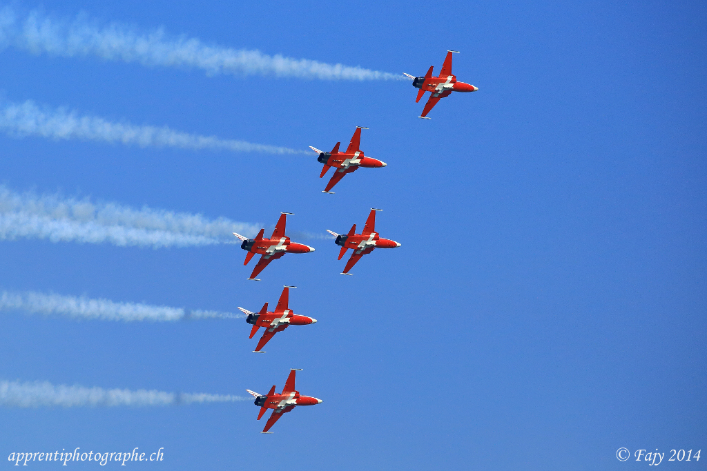 La Patrouille Suisse, fêtant son cinquantième anniversaire, était un des invités d’honneur de AIR14.