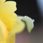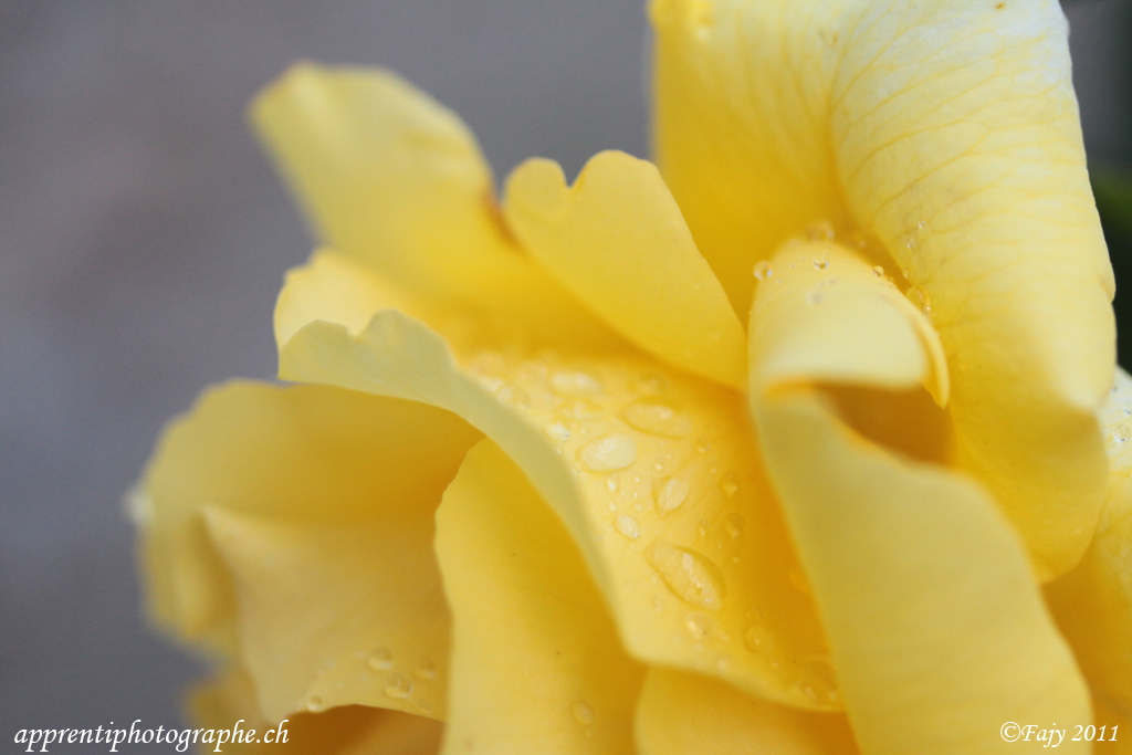 - Les perles d’eau semblent figées dans un glissement sans fin le long du pétale