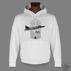 Mini T-shirt, für Auto deko, mit der Silhouette dem Swiss Kampfflugzeug FA-18 Hornet mit den Waffen von Swiss Airforce im Hintergrund illustriert. Farbversion.