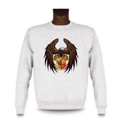 Sweatshirt für Herren it einem Adler, der den Wappenschild des Bezirks Genfs zwischen seinen Klauen hält.