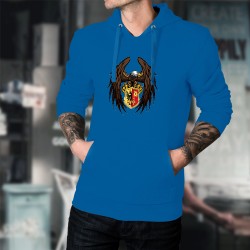 Herren Baumwolle Kapuzenpulli mit einem prächtigen Adler, ausgebreiteten Flügeln und einem Wappen in den Farben der Stadt und des Kantons Genf zwischen den Krallen