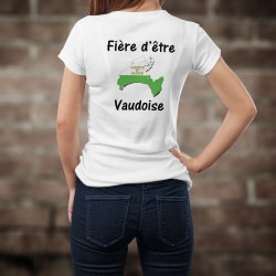 Frauen Slim T-shirt mit Waadtländer 3D Grenzen und der stichwort " Fière d'être Vaudoise" illustriert