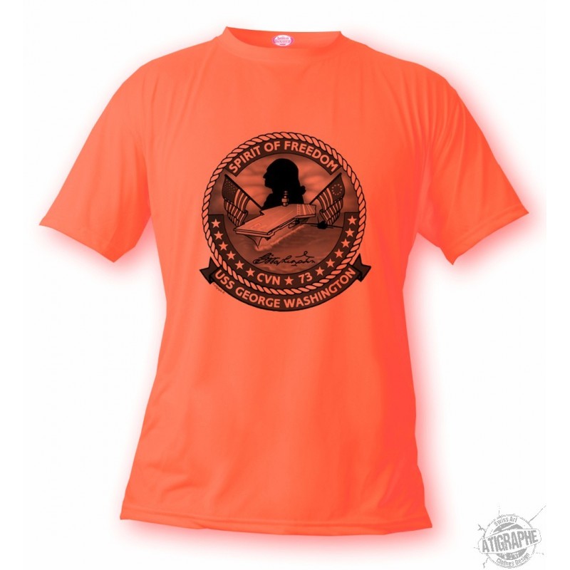 Dieses T-Shirt ist mit dem Wappen des USS Georges Washingtons ( CVN-73), der amerikanischen Klassentür-Flugzeuges " Nimitz " illustriert