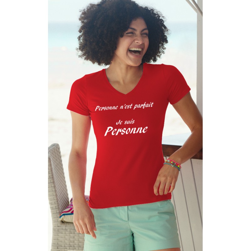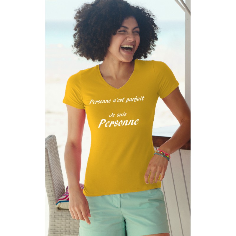 T-Shirt 100% Baumwolle, mit humorvollen französisch Zitat " Personne n'est parfait, Je suis Personne " illustriert. Eindruck von Flex