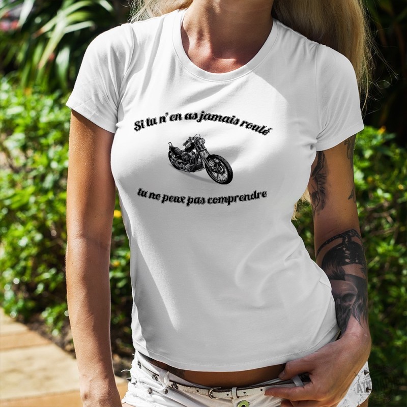 Damenmode T-shirt mit der Zitat " Jamais roulé en Chopper"