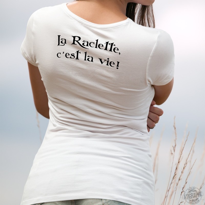 T-Shirt im sehr weiblichen Schneiden, mit dem Zitat "La Raclette, c'est la vie"