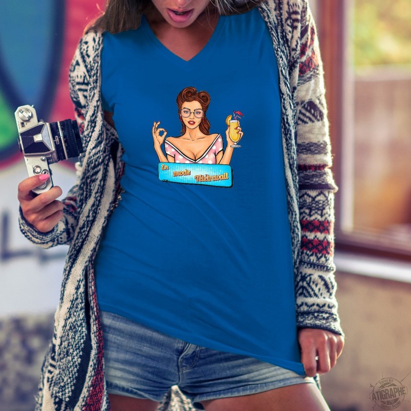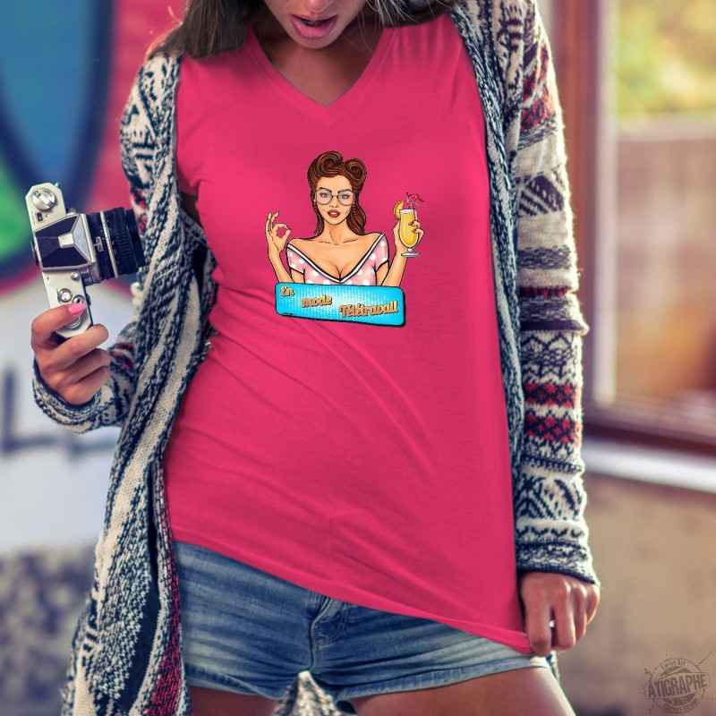 Damen Mode Baumwoll T-Shirt mit "En mode télétravail ★ Cocktail Pop Art Girl ★