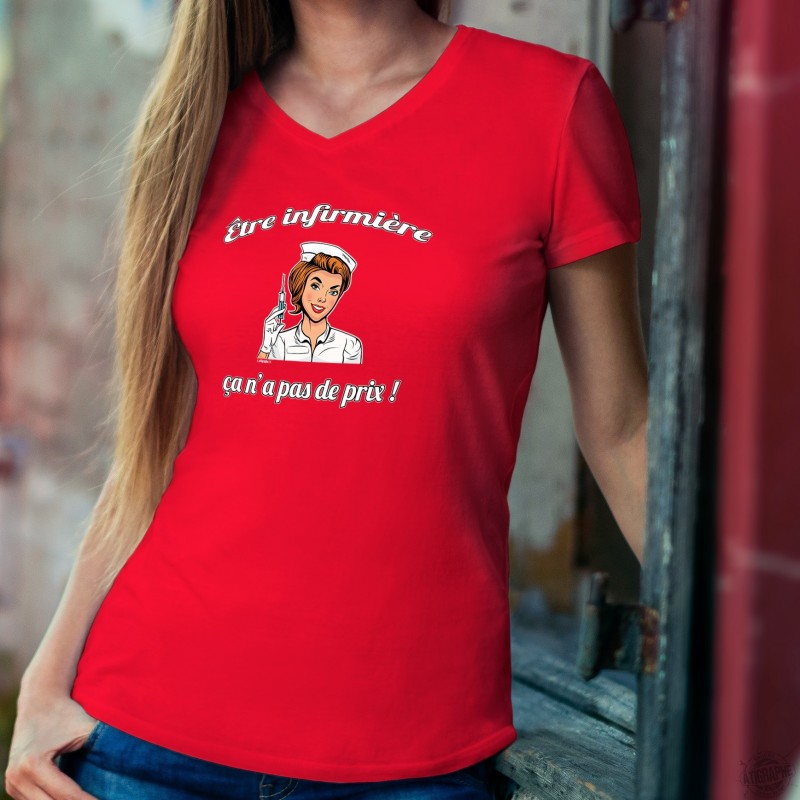 Damen Mode Baumwoll T-Shirt mit "Être infirmière, ça n'a pas de prix ✿ POP ART ✿