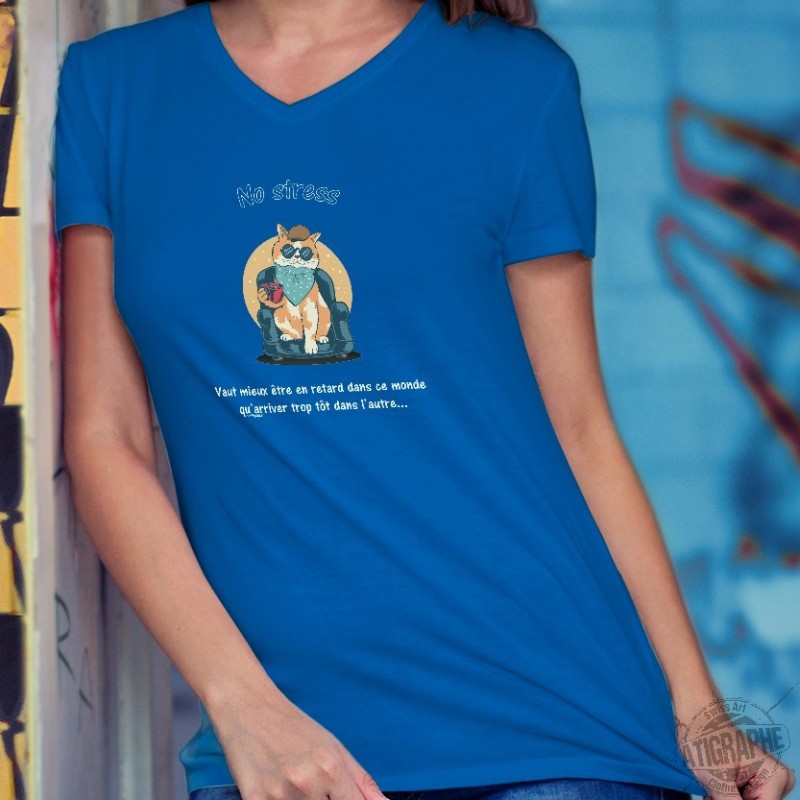 Damen Mode Baumwoll T-Shirt mit "No Stress ❤ Chat relax ❤