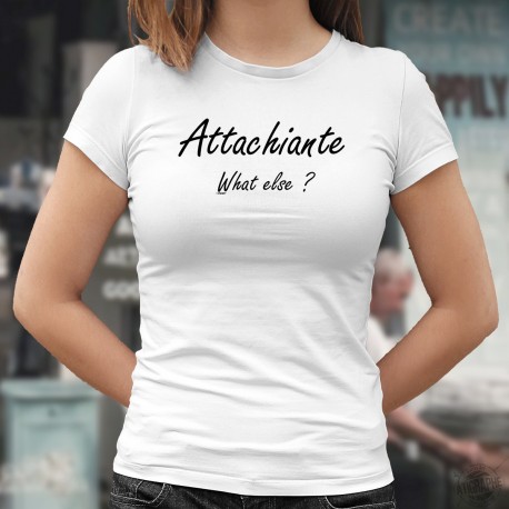 T-Shirt im sehr weiblichen Schneiden, mit dem Zitat "Attachiante, What else ? ✿ Attach(i)ante, quoi d'autre ? ✿