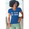 Damen-Mode-T-Shirt in einem sehr femininen Schnitt, illustriert mit dem berühmten Solex-Bike sehr von den Arbeitern in den 70er Jahren und humorvolles französisches Zitat "Je ne suis pas vieille, je suis vintage"