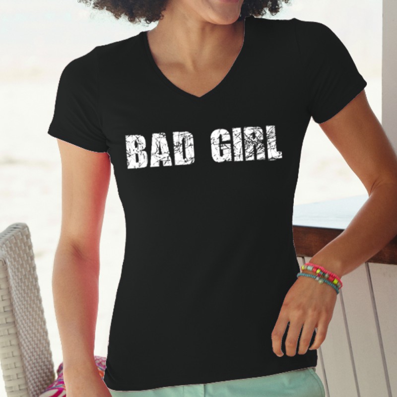 Damen Mode T-Shirt 100% Baumwolle illustriert mit humorvollen Zitat, "Bad Girl" (Böses Mädchen)