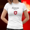 T-Shirt im sehr weiblichen Schneiden, mit dem Zitat "Suissesse, What else ?", Eine Abschweifung des Slogans von George Clooney für eine berühmte Kaffeemarke
