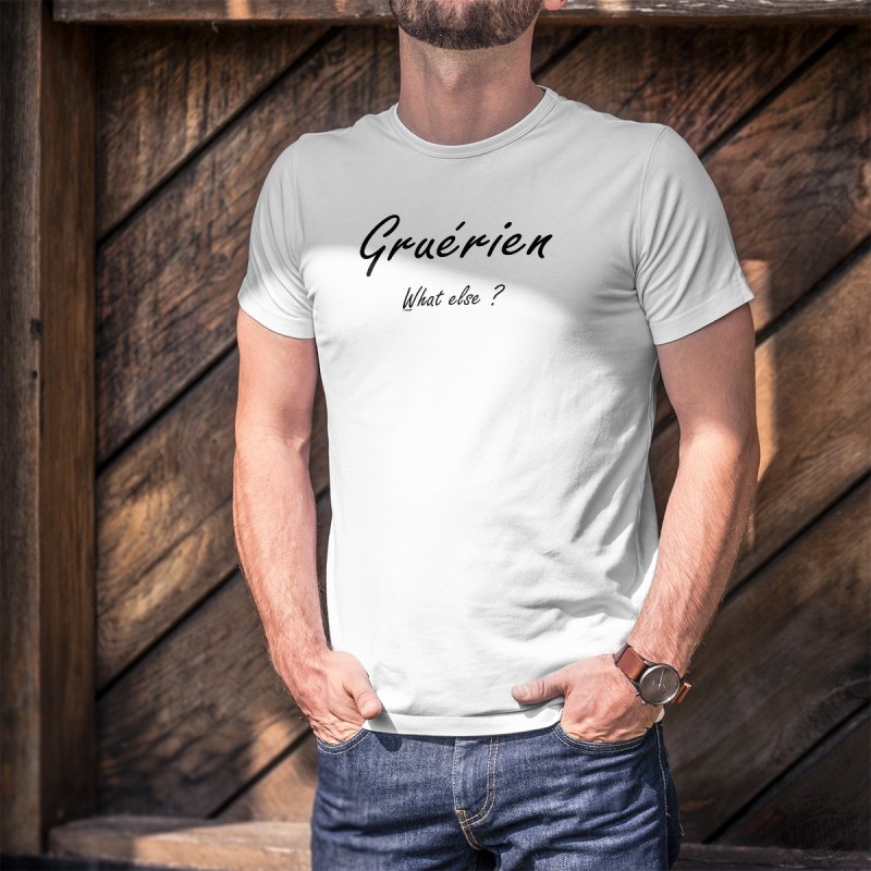 T-Shirt mit humorvollen französisch Zitat "Gruérien, What else ?", Eine Abschweifung des Slogans von George Clooney für eine berühmte Kaffeemarke