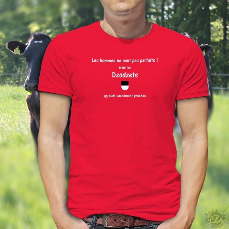 T-Shirt aus 100% Baumwolle mit dem Zitat "Dzodzet, l'homme presque parfait"