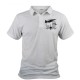 Herren Polo mit der Silhouette von der Swiss F-5 Tiger mit den Waffen von Swiss Airforce im Hintergrund illustriert