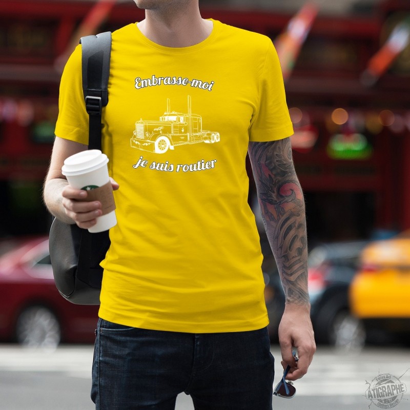 Lustiges T-Shirt aus 100% Baumwolle, illustriert mit dem Zitat "Embrasse-moi je suis routier"