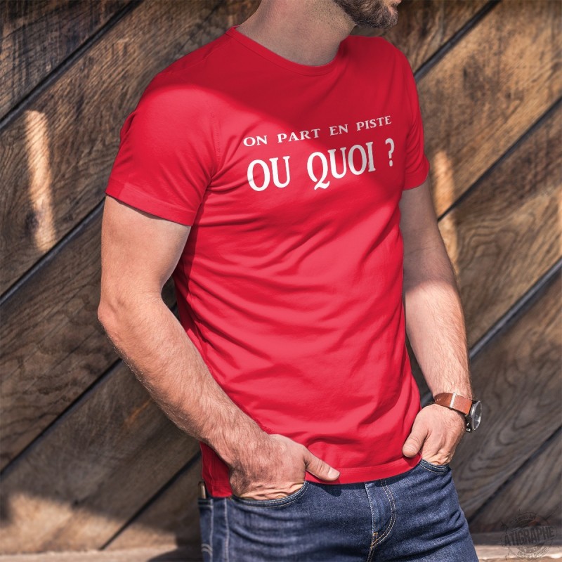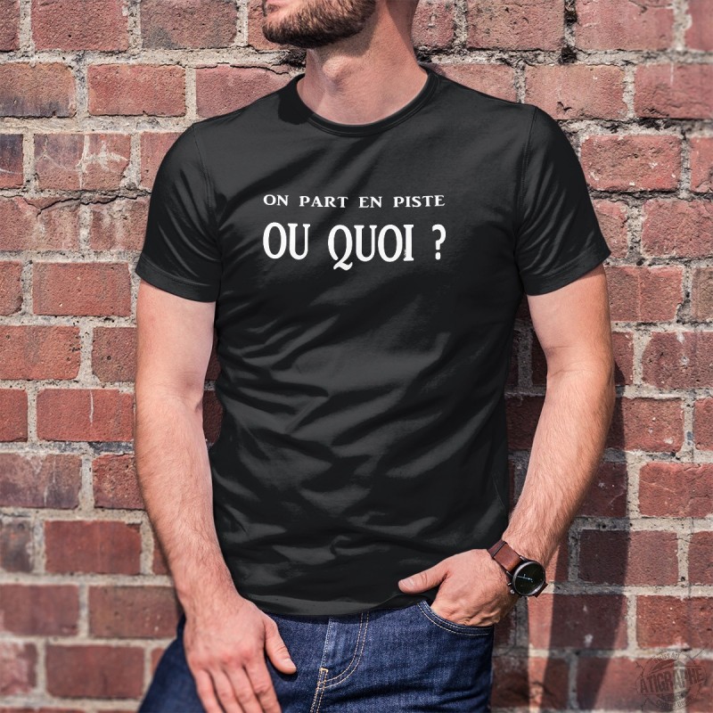 T-Shirt aus 100% Baumwolle mit dem Zitat "On part en piste OU QUOI ? ★