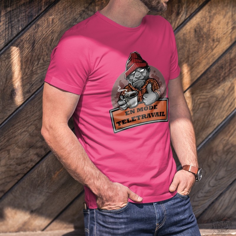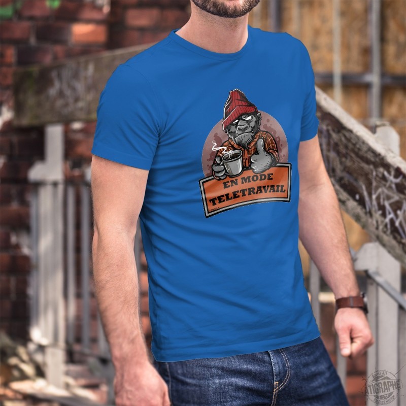 T-Shirt 100% Baumwolle, mit humorvollen französisch Zitat "En mode télétravail ★ Gorille hipster ★