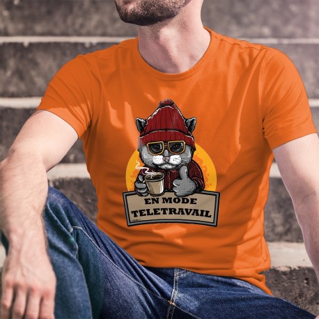 T-Shirt 100% Baumwolle, mit humorvollen französisch Zitat "En mode télétravail ★ Gorille hipster ★