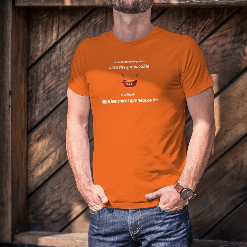T-Shirt aus 100% Baumwolle illustriert mit einem Emblem mit der Erwähnung ✚Une fondue aussi vite que possible ✚