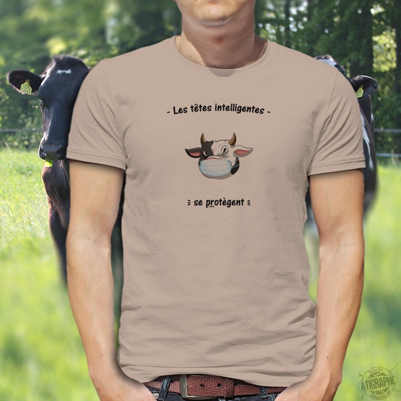 Herren T-Shirt mit Dame Helvetia und "Les têtes intelligentes se protègent ✪ taureau masqué ✪