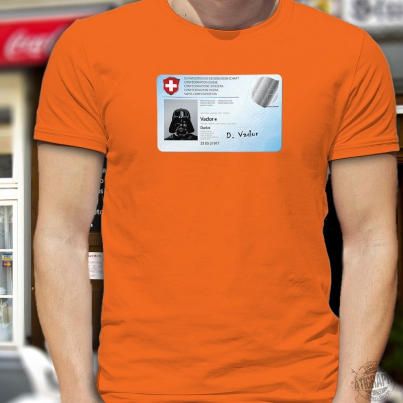 T-Shirt 100% Baumwolle, mit humorvollen französisch Zitat "Carte d'identité ✪ Dark Vador ✪