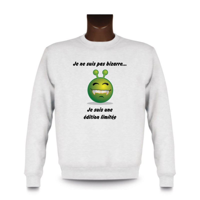 Funny Sweatshirt für Herren illustriert mit einem Alien Smiley und dem französisch lustiges Zitat "Je ne suis pas bizarre, je suis une édition limitée"
