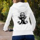 Frauen Kapuzenpulli illustriert mit einer Version des Sensenmann (Schnitter) auf der Suche nach einer Umarmung und dem Zitat „Hug me“ (gib mir eine Umarmung)