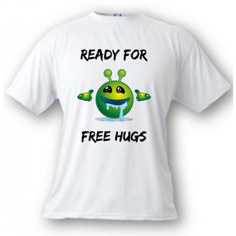 T-shirt für Mann oder Frau, das mit unserem Alien Smiley Bereit zu freien Umarmungen (Ready for free Hugs)