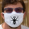 Schutzmaske mit den idealen Proportionen des Korkenziehers in einem Kreis und einem Quadrat, inspiriert von Leonardo da Vincis "Vitruvian man"