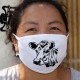 Schutzmaske aus Stoff mit der Silhouette eines Kuhkopfes in schwarz und weiß dargestellt