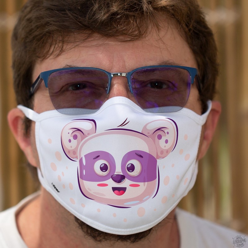 Nehmen Sie die ❤ Panda-Haltung ❤ an. Waschbare, zweischichtige Stoffmaske mit einem entzückenden, fröhlichen Pandakopf in Pastellfarben und im Kawaii-Stil