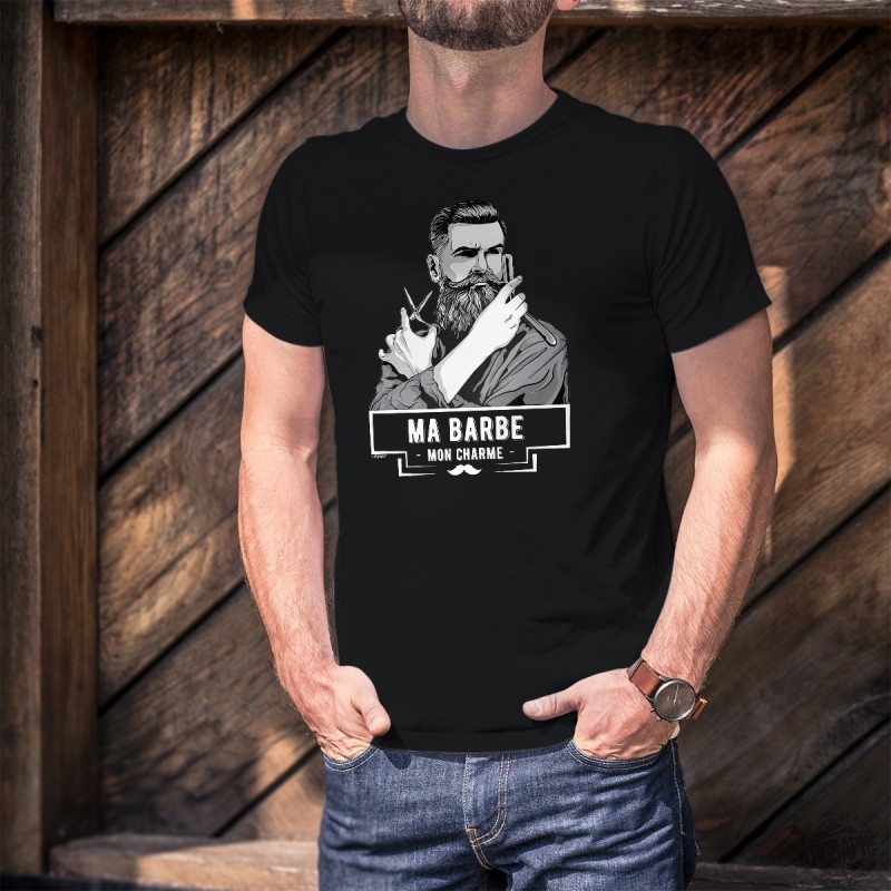 T-Shirt 100% Baumwolle, mit dem französischen Zitat "Ma barbe, mon Charme"