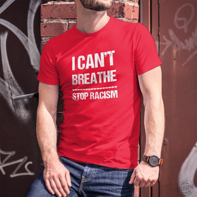 Herren T-Shirt aus 100% Baumwolle mit dem Slogan ✪ I can't Breathe ✪ STOP RACISM ✪. Für jedes verkaufte T-Shirt wird eine Spende von 4 CHF an die GRA, Stiftung gegen Rassismus und Antisemitismus, in Erinnerung an George Floyd und alle anderen Opfer geleistet
