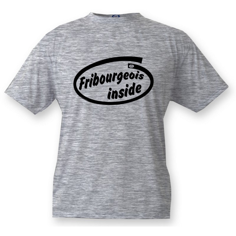 Humoristisch T-Shirt für Kinder mit dem Slogan " Fribourgeois inside " illustriert. 2 Farben im Auswahl