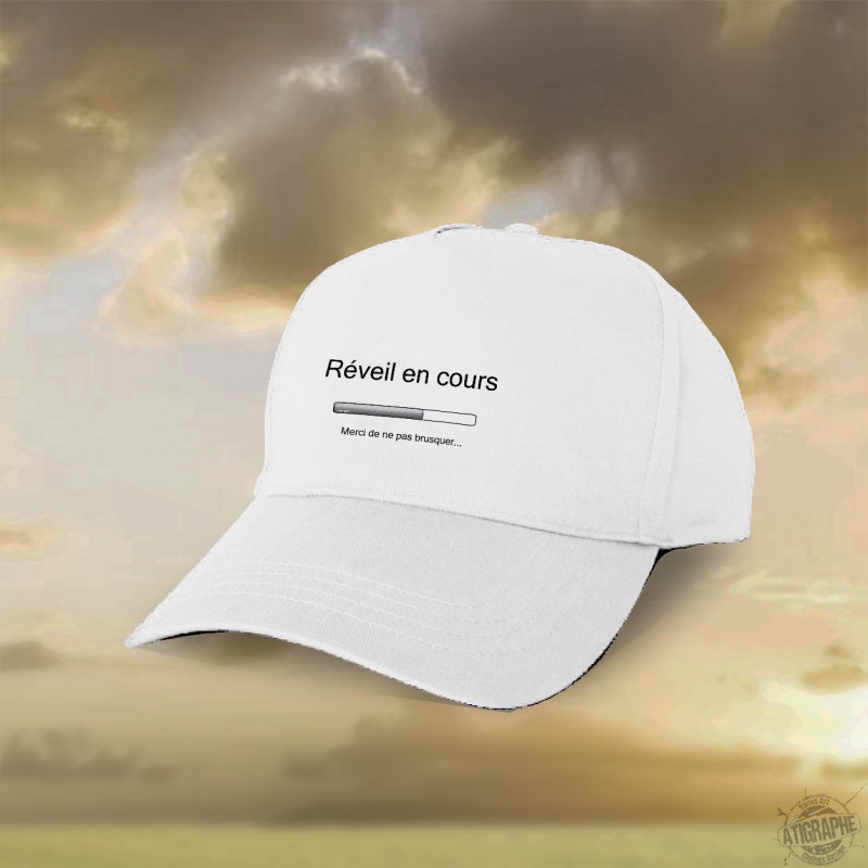 Mütze mit der Zitat "Réveil en cours", französisch Version