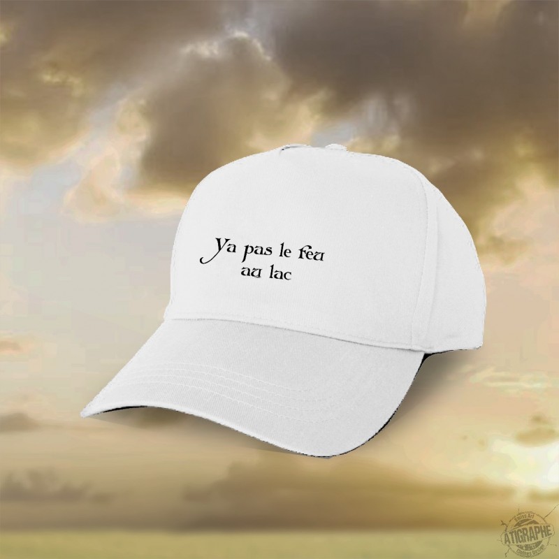 Baseballmütze illustriert mit dem französischen Zitat "Ya pas le feu au lac"