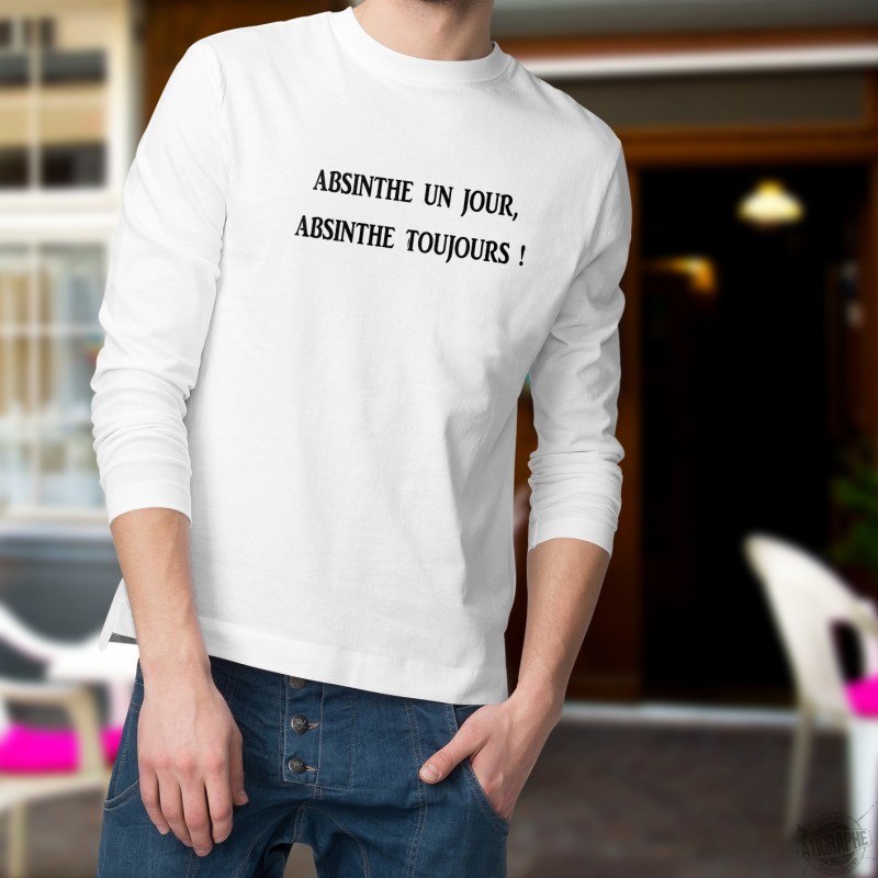 Funny Sweatshirt für Herren illustriert mit der französisch Zitat "Absinthe un jour, Absinthe toujours !"