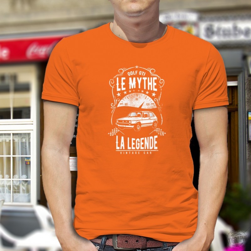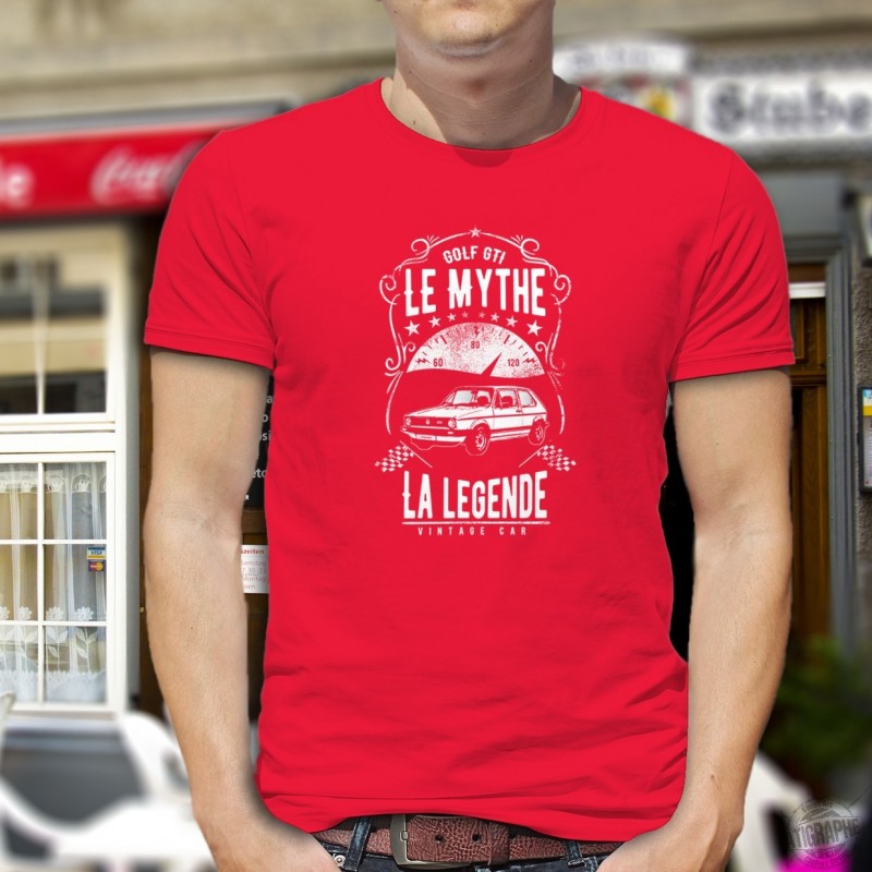 T-Shirt aus 100% Baumwolle, illustriert von dem berühmten VW Golf GTI und "Golf GTI, le mythe, la légende"