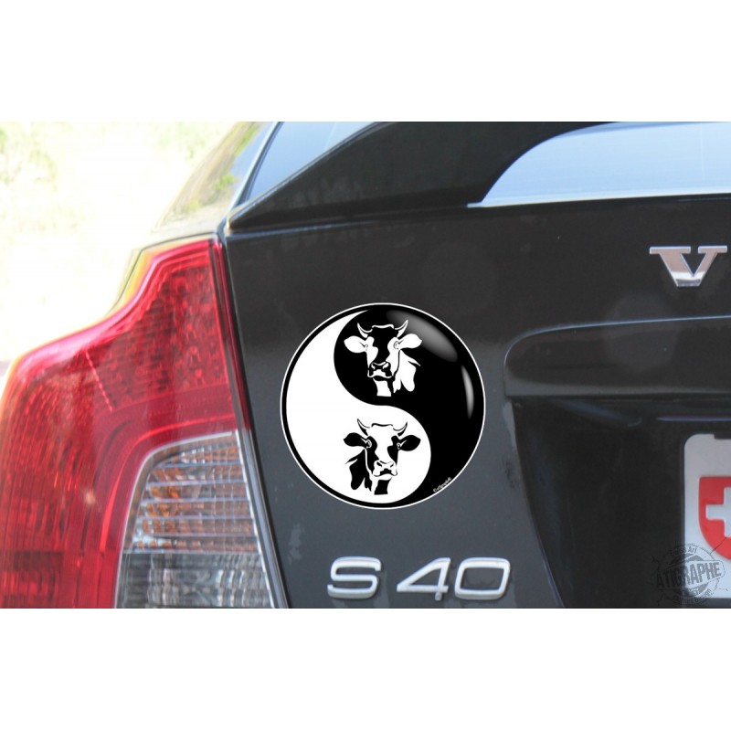 Sticker Aufkleber für Auto, notebook oder smartphone deko, mit dem Tribal-Tattoo Kuhkopf innerhalb ☯ Yins und Yangs ☯ illustriert