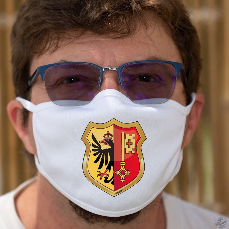 Zweischichtige Schutzmaske aus Stoff, die bei 60 ° C mehrfach waschbar, mit dem Genfer Wappen