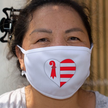 Zweischichtige Schutzmaske aus abwaschbarem Stoff, Flagge des Kantons Jura, in Form eines Herzens, damit Sie Ihren Stolz für Ihren Kanton zeigen können