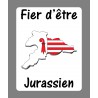 Aufkleber, für Auto, Fenster, Tür, etc. illustriert mit den Jura Grenzen in der Jura Flagge Farben und der Slogan "Fier d'être Jurassien"