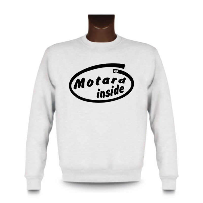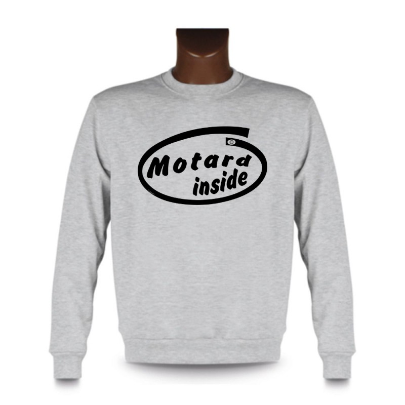 Funny Sweatshirt für Herren mit dem Slogan " Motard inside " illustrierte. Eine Zwinkern Form von Intel Slogan