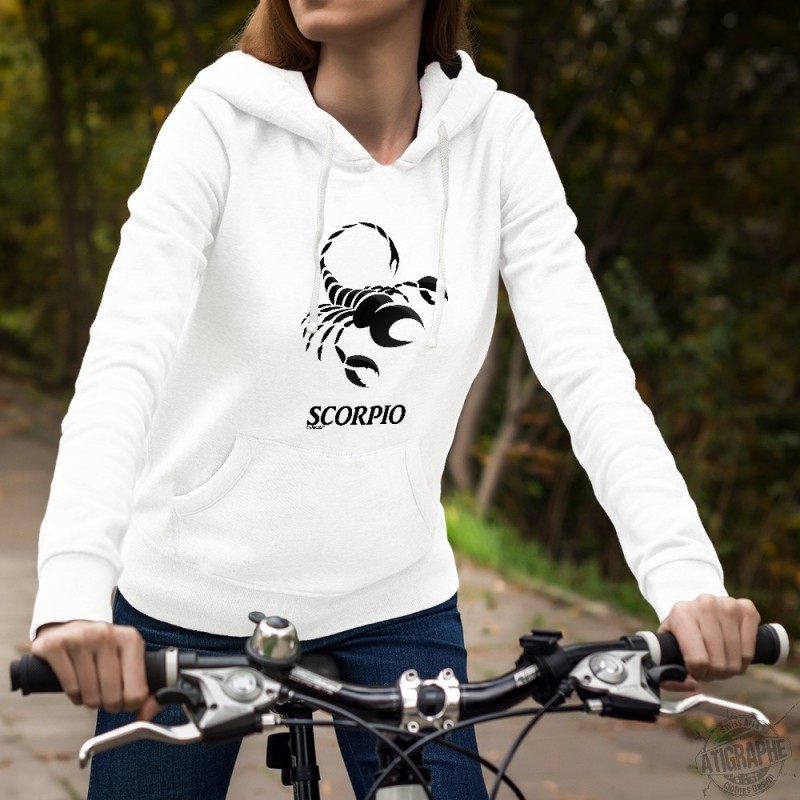 Kapuzenpullover für Damen illustriert mit Sternzeichen ♏ Skorpion ♏ für Menschen zwischen 23. Oktober und 22. November geboren