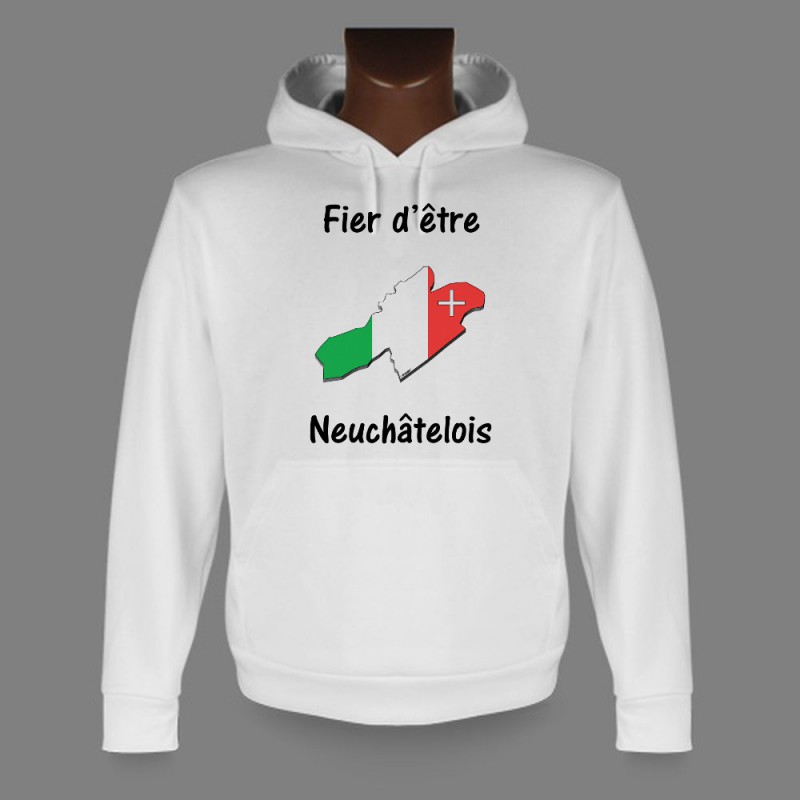 Kapuzen-Sweatshirt für Herren, mit der stichwort " Fier d'être Neuchâtelois" illustriert