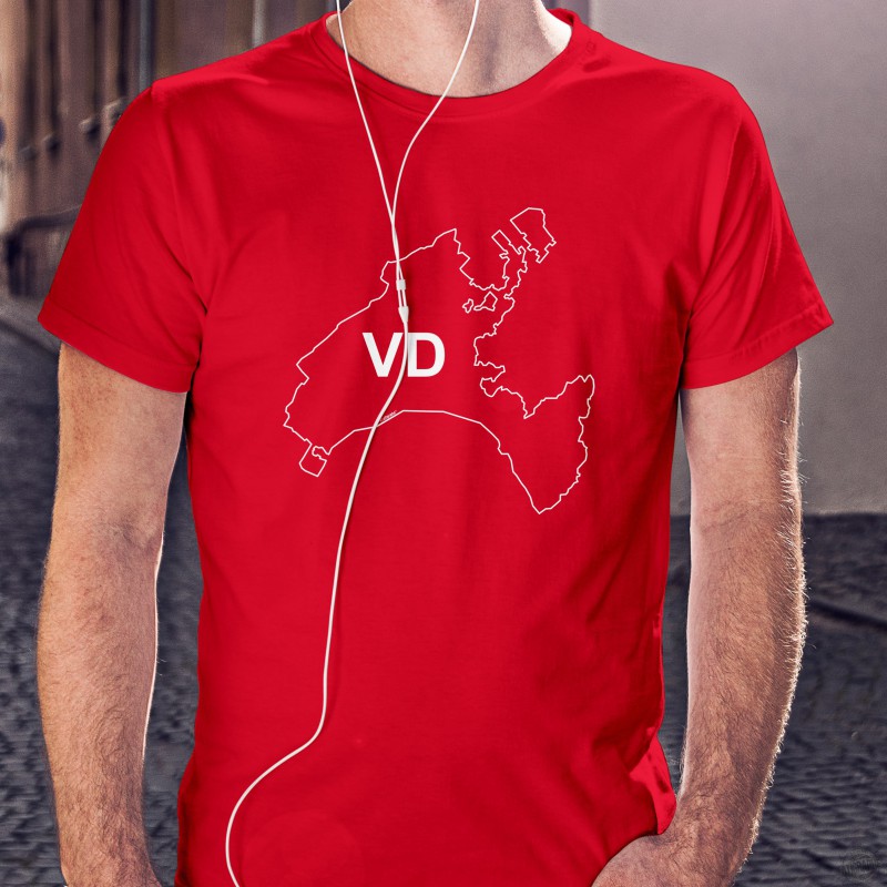 Baumwoll-T-Shirt illustriert mit der Waadtländer Kantonsgrenzen um das Akronym "VD"