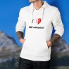 Kapuzen-Sweatshirt für Mann oder Frau, mit der Walliser Fahne und dem Slogan "J'aime UNE valaisanne" illustriert.