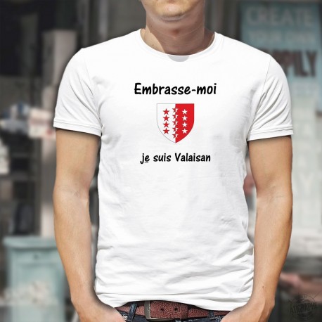 T-shirt mit der Walliser Wappen und dem Slogan "Embrasse-moi, je suis Valaisan" illustriert